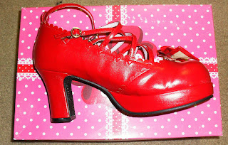 rote Schuhe und probierte sie an.. allerdings gab es die roten Schuhe
